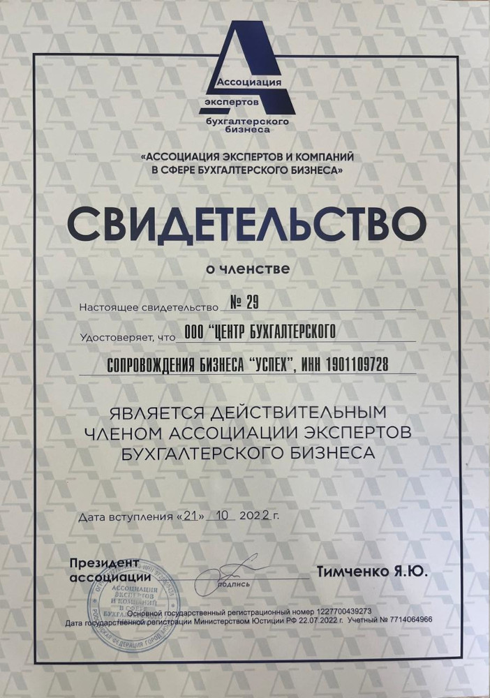 С 2023 года организация является членом Ассоциации экспертов и компаний в сфере бухгалтерского бизнеса. 50% наших сотрудников являются аттестованными в палате налоговых консультантов, консультантами по налогам и сборам и имеют практический опыт работы по 10 и более лет.